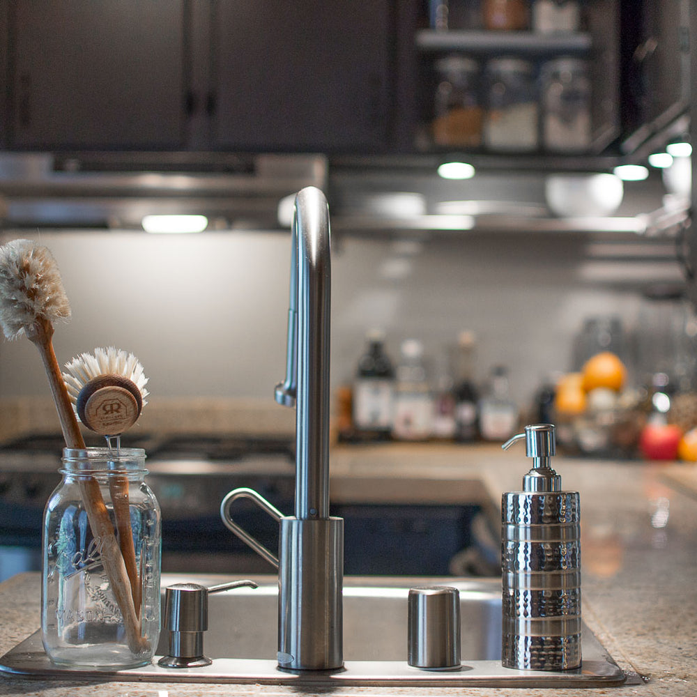 1. Cleaning Tools. One of the first things that had to go were some plastic sponges. Not only were the sponges non-recyclable and non-compostable, they stank and made my hands smell when I used them. Instead of replacing them with new sponges, I swapped them for a wood dish brush, a wood bottle brush and a copper pot scrubber. These three tools are all recyclable or compostable and they don’t smell! They also last much longer than a plastic sponge.